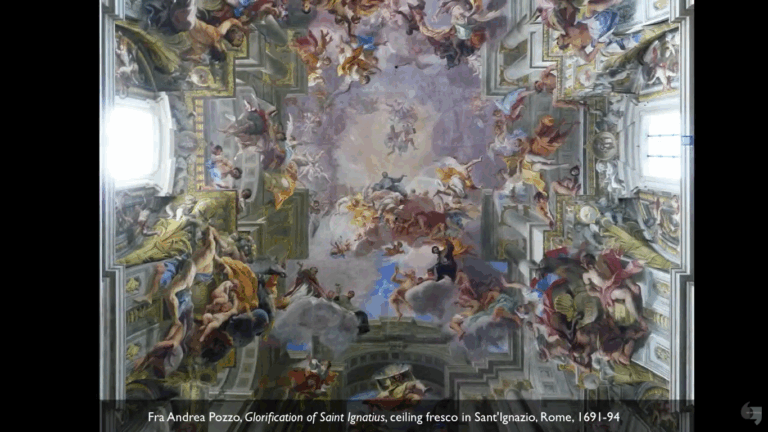 Overview:   This art history video discussion looks at Fra Andrea Pozzo’s “Glorification of Saint Ignatius” ceiling fresco i...