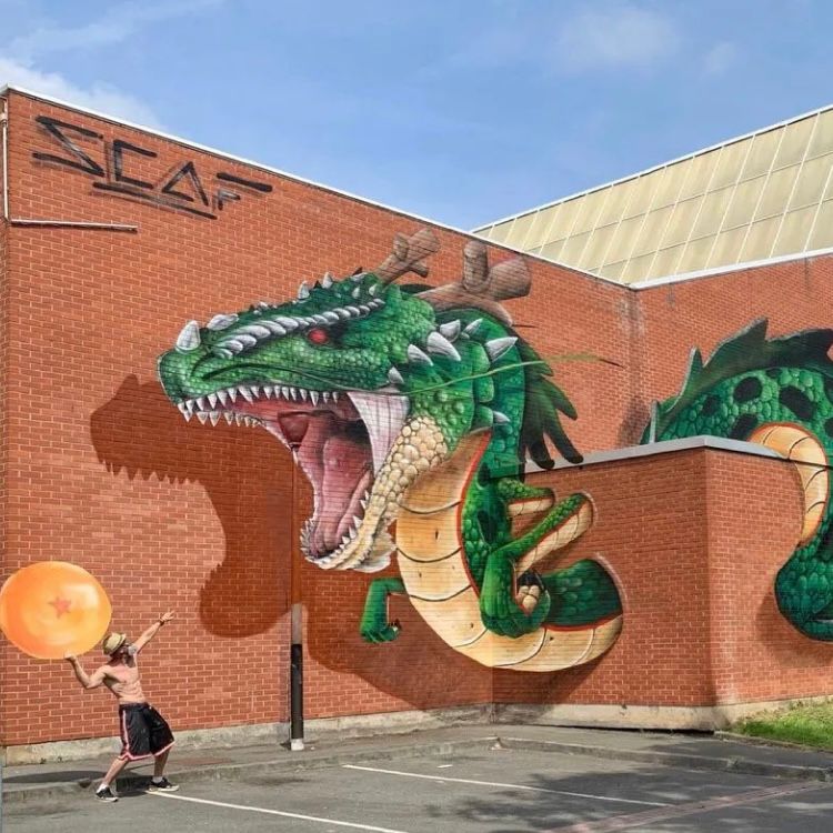 SCAF Oner (Pierre Bertolotti) è un artista francese specializzato in graffiti 3D e illusioni ottiche su larga scala. Nato a Nancy e attivo dal 2002, è noto per trasformare muri urbani e spazi abbandonati in scenari iperrealistici e coinvolgenti, dove animali e creature fantastiche sembrano uscire dalla parete. Membro della Smala Crew, lavora esclusivamente con spray e acrilici, fondendo tecnica impeccabile e spirito ludico. Le sue opere, apparse su media internazionali e in festival come Coul’heures d’Automne e LongArtStreet, riflettono una ricerca continua tra meraviglia visiva, precisione e interazione con il pubblico.